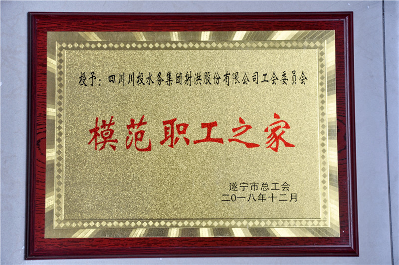 日前,公司收到《遂寧市總工會(huì)關(guān)于命名2018年遂寧市模范職工之家、模范職工小家的通知》和《遂寧市總工會(huì)關(guān)于命名2018年度精品工會(huì)、示范公會(huì)、達(dá)標(biāo)公會(huì)的通知》的文件,川投水務(wù)射洪公司被授予“精品工會(huì)”和“模范職工之家”的榮譽(yù)稱號。