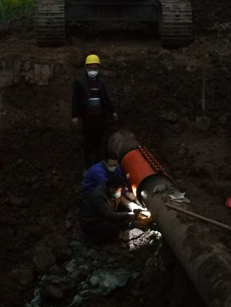 查清現(xiàn)場情況后,公司第一時(shí)間向分管副縣長和相關(guān)部門作了匯報(bào)。為了在最短時(shí)間內(nèi)恢復(fù)供水,搶修人員現(xiàn)場商量最佳搶修方案,并立即關(guān)閉閥門、排水,作業(yè)面開挖,調(diào)度搶修器材。綜合部也第一時(shí)間發(fā)布臨時(shí)停水通知,讓停水區(qū)域居民了解實(shí)情,知曉搶修進(jìn)度。公司總經(jīng)理劉松果和副總經(jīng)理王洪先始終堅(jiān)守在搶修一線,親臨指揮。搶修人員戴著口罩跳入土坑奮力搶修,大家相互配合默契,有的在地面往下傳遞工具,維修人員則擼起雙袖,貓著腰將管道的“傷口”處理干凈,整個(gè)搶修工作有條不紊。經(jīng)過3個(gè)小時(shí)奮力搶修,修復(fù)了受損管道,晚上20時(shí)許,恢復(fù)正常供水。