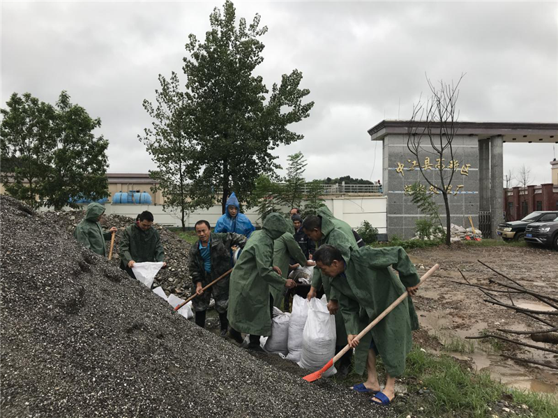 暴雨仍在繼續(xù),中江縣上游羅江水文站重現(xiàn)100年一遇的洪水,預(yù)計上游洪峰過境時,凱江最高水位將達425.2米(超警戒水位0.7米),流量將達2950立方米/秒。16日,中江縣人民政府防汛抗旱指揮部啟動II級防汛應(yīng)急響應(yīng)。位于凱江兩側(cè)的繼光水廠、南華水廠、貓兒嘴污水處理廠、經(jīng)開區(qū)污水處理廠能否經(jīng)受住嚴峻考驗?朱禹總經(jīng)理高度重視!他再次帶隊對各個廠、各個取水點進行拉網(wǎng)式排查,根據(jù)了解到實時汛情,做出科學(xué)預(yù)判,要求物資保障組立即組織準備好防汛物資、沙袋、鐵鍬、編織袋、雨衣等防汛物資,搶險隊集結(jié)待命。中午11點,物資保障組在各廠、各取水點原有基礎(chǔ)上緊急采購了200個編織袋,組織裝運430余袋沙袋,約3.2噸,12點之前人員物資全部到位。同時,朱禹總經(jīng)理親自帶領(lǐng)防汛搶險隊,分別在經(jīng)開區(qū)污水處理廠、繼光水廠、南華水廠對廠區(qū)大門、配電室、泵房進行封堵。經(jīng)過全體干部職工的不懈努力,洪峰抵達前,完成了各廠封堵工作。由于組織有序、應(yīng)對有效,此次洪峰過境沒有對公司各生產(chǎn)點造成較大影響。