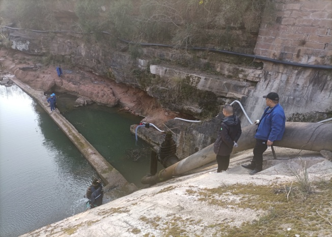 1月4日,公司抽調(diào)生產(chǎn)部、工程部的技術(shù)骨干人員,組建水源保供攻堅小組,在劉家河水庫開展閘閥堵漏和提水抽水工作。小組兵分四路,一路駐扎劉家河圍堰,安裝發(fā)電機和抽水泵,將水庫大壩下游的水抽到大壩內(nèi),并對輸水管道閘閥漏水點開展堵漏;一路開展全城區(qū)主供水管道探漏堵漏,最大程度減少水資源浪費;一路積極和電力部門協(xié)調(diào)聯(lián)系接通高壓線路,力爭在最短時間完成抽水管道安裝;一路積極溝通協(xié)調(diào)相關(guān)部門,在普安周邊尋找可用水源,盡可能向普安補充原水。