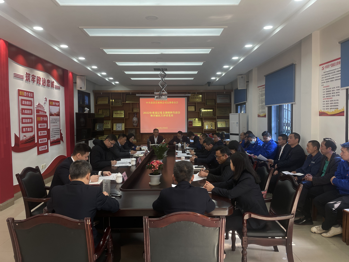 3月8日上午,根據(jù)川投水務(wù)集團黨委《關(guān)于召開2022年度基層黨支部組織生活會和開展民主評議黨員的通知》(川投水務(wù)黨委〔2023〕14號)文件要求,榮縣水司黨支部召開2022年度基層黨支部組織生活會。川投水務(wù)集團黨委委員、副總經(jīng)理嚴斯亮到會督導。榮縣水司黨支部書記、執(zhí)行董事、龔慶主持會議,全體黨員共計27人參加會議。