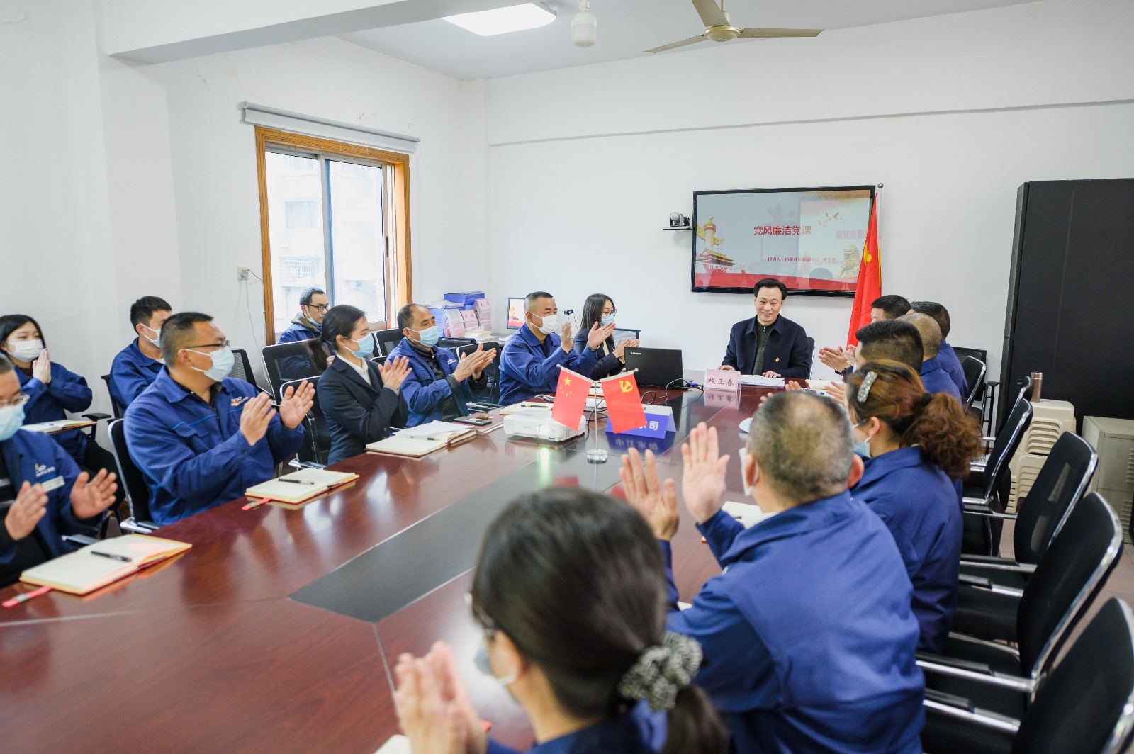 植樹活動(dòng)結(jié)束后,在中江水司三樓會(huì)議室,市委政法委副書記、市法學(xué)會(huì)常務(wù)副會(huì)長程正春同志以“黨徽黨旗的故事”和黨風(fēng)廉政為題,為中江水司全體黨員上了兩堂精彩的專題黨課。在“黨徽黨旗的故事”黨課中,程書記以PPT形式,生動(dòng)、細(xì)致、深入淺出地帶領(lǐng)大家回顧了黨徽黨旗的發(fā)展演變過程,學(xué)習(xí)了黨章等關(guān)于黨徽黨旗的規(guī)定,了解了黨徽黨旗的制作和使用等知識(shí)。在黨風(fēng)廉政建設(shè)主題黨課上,程書記對十九屆中央紀(jì)委五次全會(huì)、四川省紀(jì)委十一屆五次全會(huì)以及德陽市紀(jì)委八屆六次全會(huì)精神進(jìn)行了宣講,著重就三次會(huì)議上對黨風(fēng)廉政工作的部署進(jìn)行了講解。他強(qiáng)調(diào):黨風(fēng)廉政建設(shè)永遠(yuǎn)在路上,支部要切實(shí)履行好黨風(fēng)廉政建設(shè)的主體責(zé)任,加強(qiáng)清廉企業(yè)建設(shè),切實(shí)強(qiáng)化黨建政治引領(lǐng),嚴(yán)肅黨內(nèi)政治生活,堅(jiān)持兩手抓、兩手硬,全力推動(dòng)國有資產(chǎn)保值增值,黨員干部要樹牢以人民為中心的服務(wù)思想,進(jìn)一步優(yōu)化服務(wù)措施,堅(jiān)持為人民辦實(shí)事。