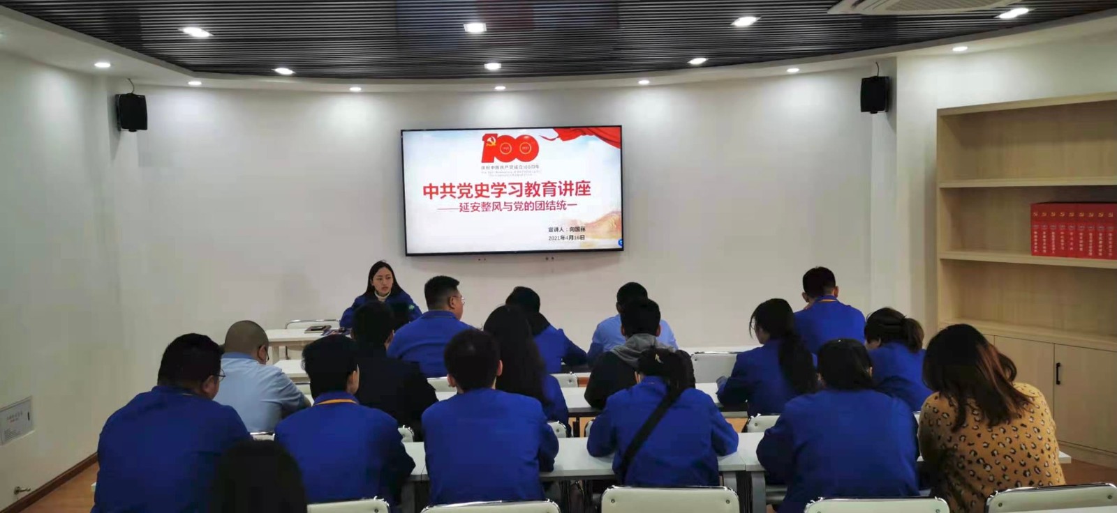 為了深入學(xué)習(xí)貫徹習(xí)近平總書記在黨史教育學(xué)習(xí)動(dòng)員大會(huì)上的重要講話精神,落實(shí)習(xí)近平總書記關(guān)于黨史、新中國史、改革開放史、社會(huì)主義發(fā)展史,喜迎建黨百年專題教育,重溫延安整風(fēng)歷史,弘楊延安整風(fēng)精神,4月16日,川投水務(wù)射洪水司團(tuán)支部開展《延安整風(fēng)與黨的團(tuán)結(jié)統(tǒng)一》專題講座。本次講座由團(tuán)支部書記向國麗擔(dān)任主講人。公司全體團(tuán)員到場(chǎng)參與講座。