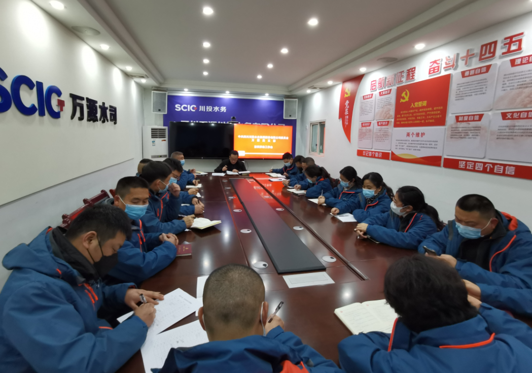 2022年1月24日下午,按照川投水務(wù)黨委的要求,萬(wàn)源水司組織開(kāi)展專題學(xué)習(xí)會(huì)議,傳達(dá)學(xué)習(xí)了四川發(fā)展《落實(shí)深化改革創(chuàng)新發(fā)展總體方案近期重點(diǎn)工作》等相關(guān)文件精神。