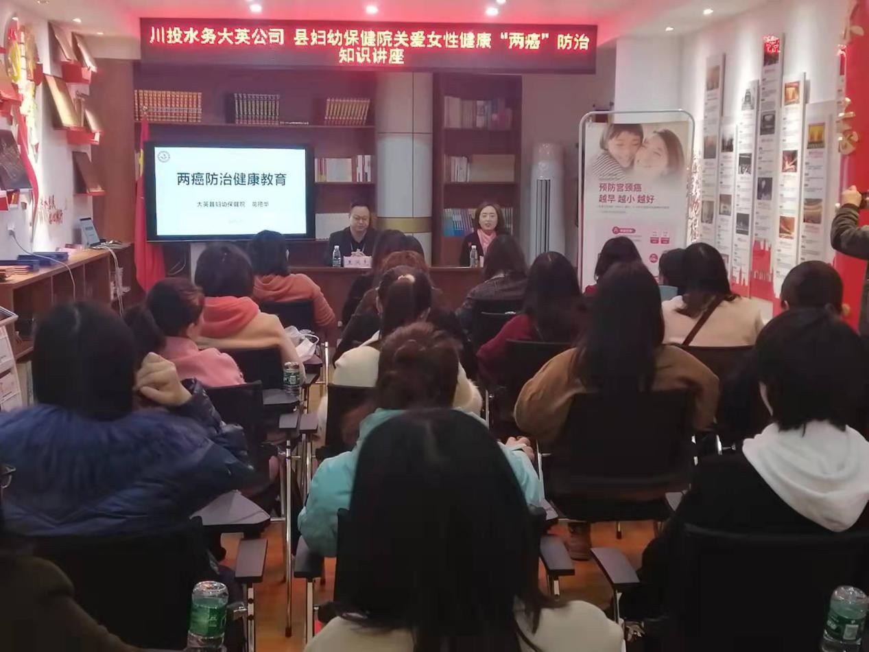 為切實(shí)維護(hù)廣大女性同胞的身心健康,提高全體女干部職工的健康保健意識(shí)。在“三八”國(guó)際勞動(dòng)?jì)D女節(jié)來(lái)臨之際,3月4日上午,川投水務(wù)大英公司黨支部、工會(huì)與大英縣婦幼保健院聯(lián)合舉辦關(guān)愛女性健康“兩癌”防治知識(shí)健康講座主題活動(dòng)。公司全體女黨員干部職工參加,大英縣婦幼保健院院長(zhǎng)龍艷華主講,川投水務(wù)大英公司副總經(jīng)理、工會(huì)主席王洪先同志受公司黨支部書記、總經(jīng)理王文川同志委托出席并主持講座。