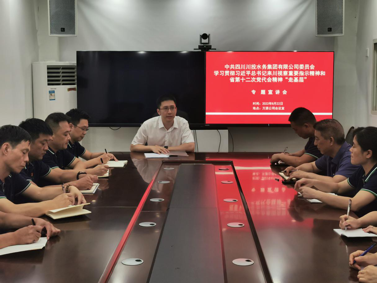 根據(jù)川投水務(wù)集團(tuán)黨委《關(guān)于認(rèn)真做好學(xué)習(xí)貫徹習(xí)近平總書(shū)記來(lái)川視察重要指示精神和省第十二次黨代會(huì)精神“走基層”專題宣講的通知》統(tǒng)一安排部署,8月23日,川投水務(wù)集團(tuán)黨委委員、副總經(jīng)理嚴(yán)斯亮來(lái)到萬(wàn)源公司開(kāi)展專題宣講活動(dòng)。