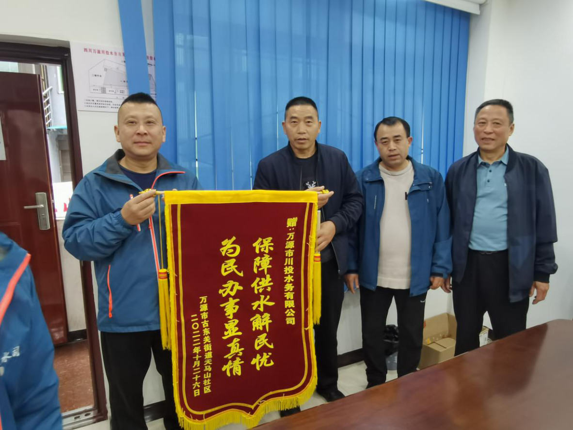 這面錦旗是對(duì)企業(yè)工作的認(rèn)可,更是一種鞭策,在今后的工作中,我們將繼續(xù)秉承“安全優(yōu)質(zhì)供水,用心服務(wù)社會(huì)”的企業(yè)理念,不斷提高供水管理和服務(wù)水平,讓群眾喝上安全水、放心水、優(yōu)質(zhì)水。