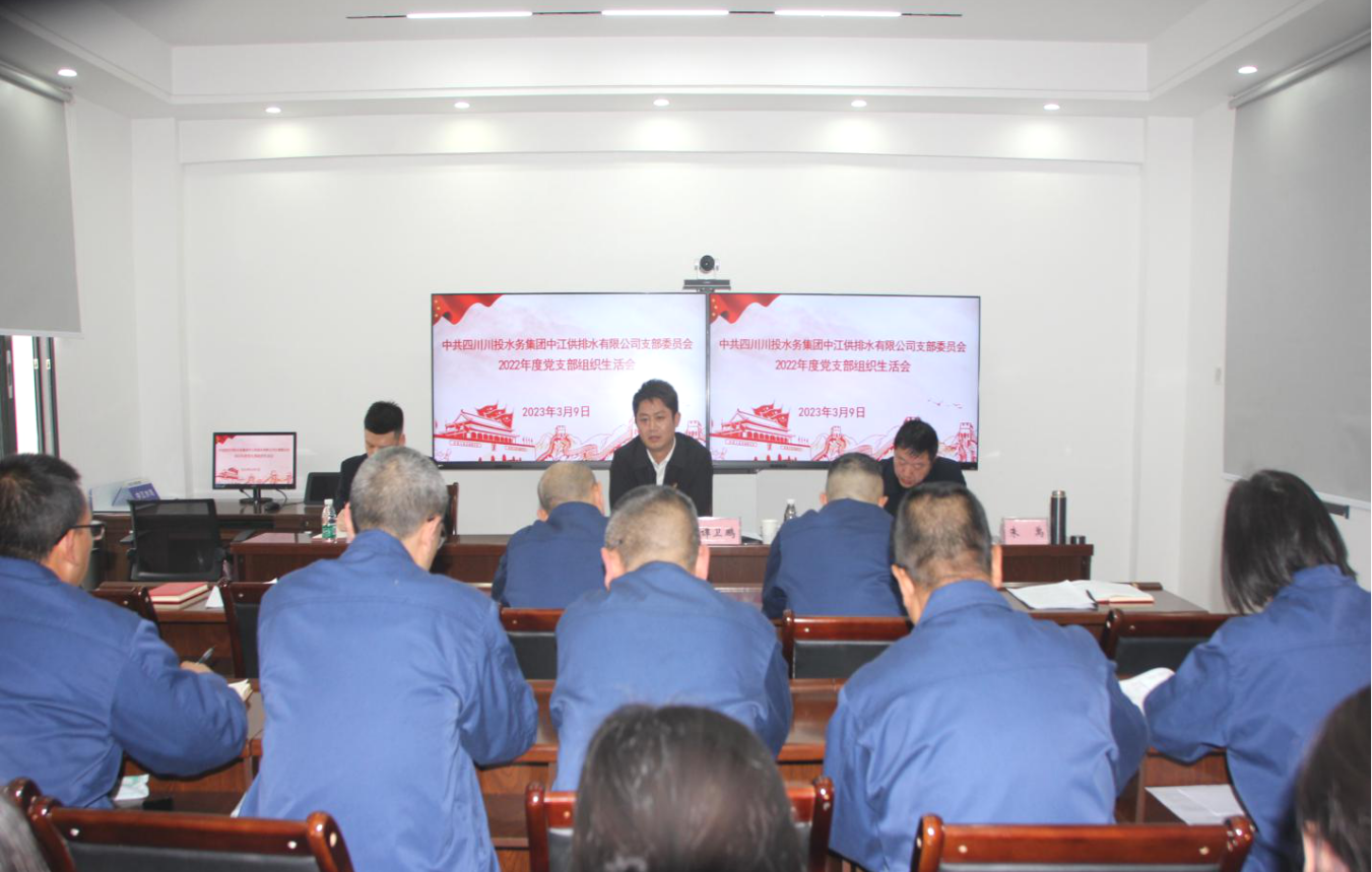 2023年3月9日,中江水司黨支部組織召開2022年度組織生活會暨民主評議黨員大會,會議由黨支部書記朱禹主持,支部16名黨員同志參加會議。川投水務集團副總經(jīng)理譚衛(wèi)鵬率黨群紀檢部工作人員進行了現(xiàn)場督導。