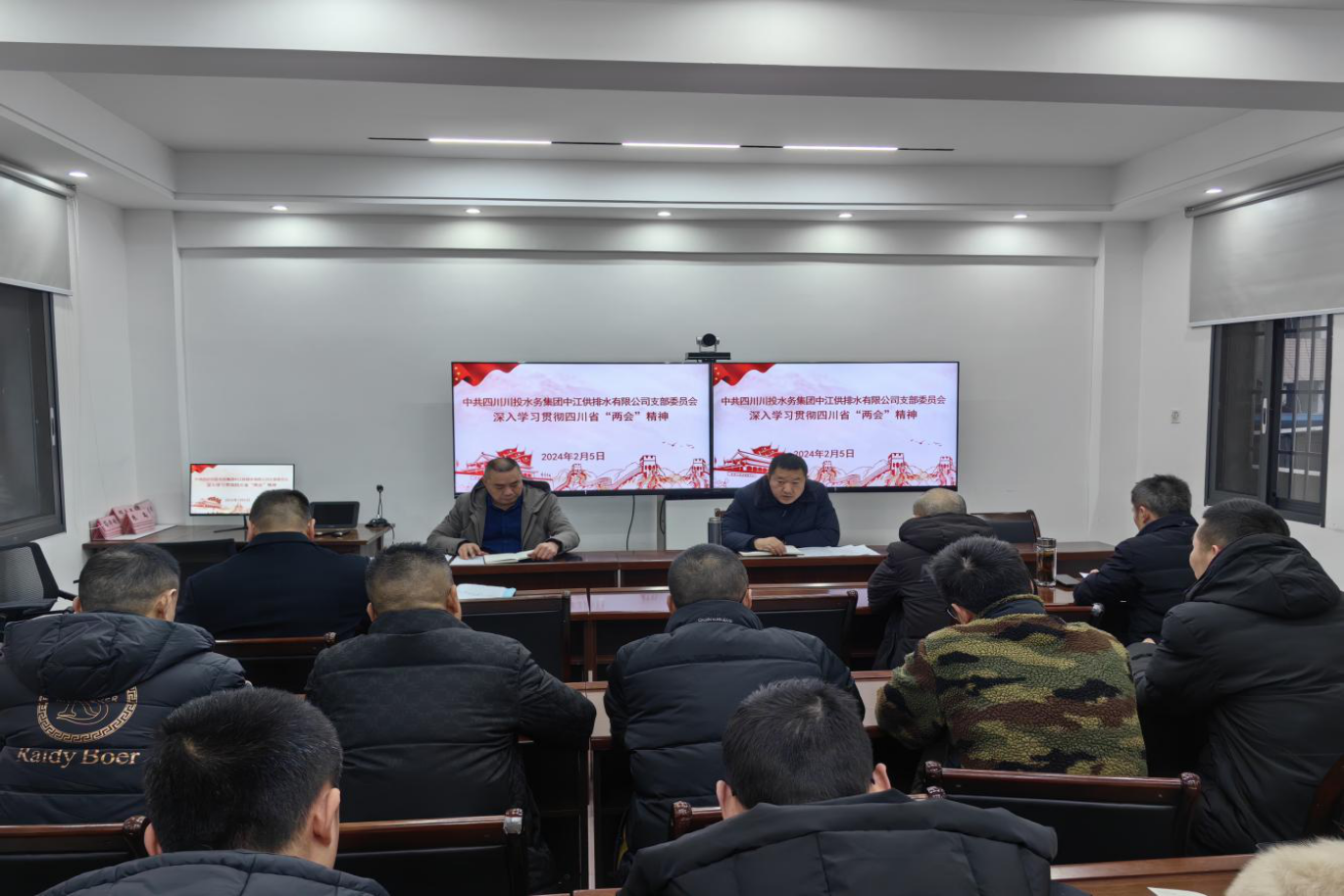 2月5日,中江水司召開會議,深入學(xué)習(xí)貫徹四川省“兩會”精神。會議由黨支部書記朱禹主持,公司班組以上管理人員、各部門員工代表參加了會議。