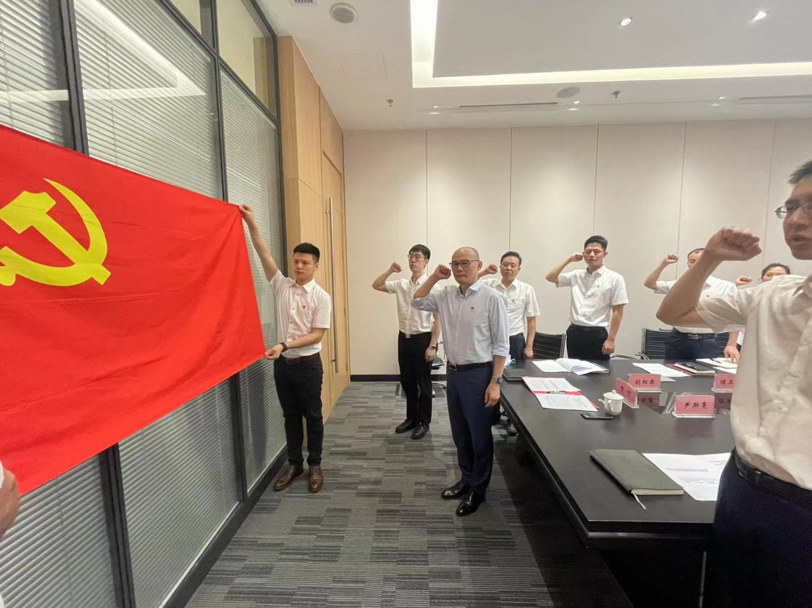 大會在莊嚴的國歌聲中開幕,黨委書記賀寧同志帶領(lǐng)全體預(yù)備黨員同志們,面向黨旗莊嚴宣誓,入黨誓詞句句鏗鏘、聲聲振耳、激蕩人心,我們將“不忘初心,牢記使命”為黨的事業(yè)接續(xù)奮斗鑄就更加輝煌的明天!同時,正式黨員同志們也再次重溫了入黨誓詞。