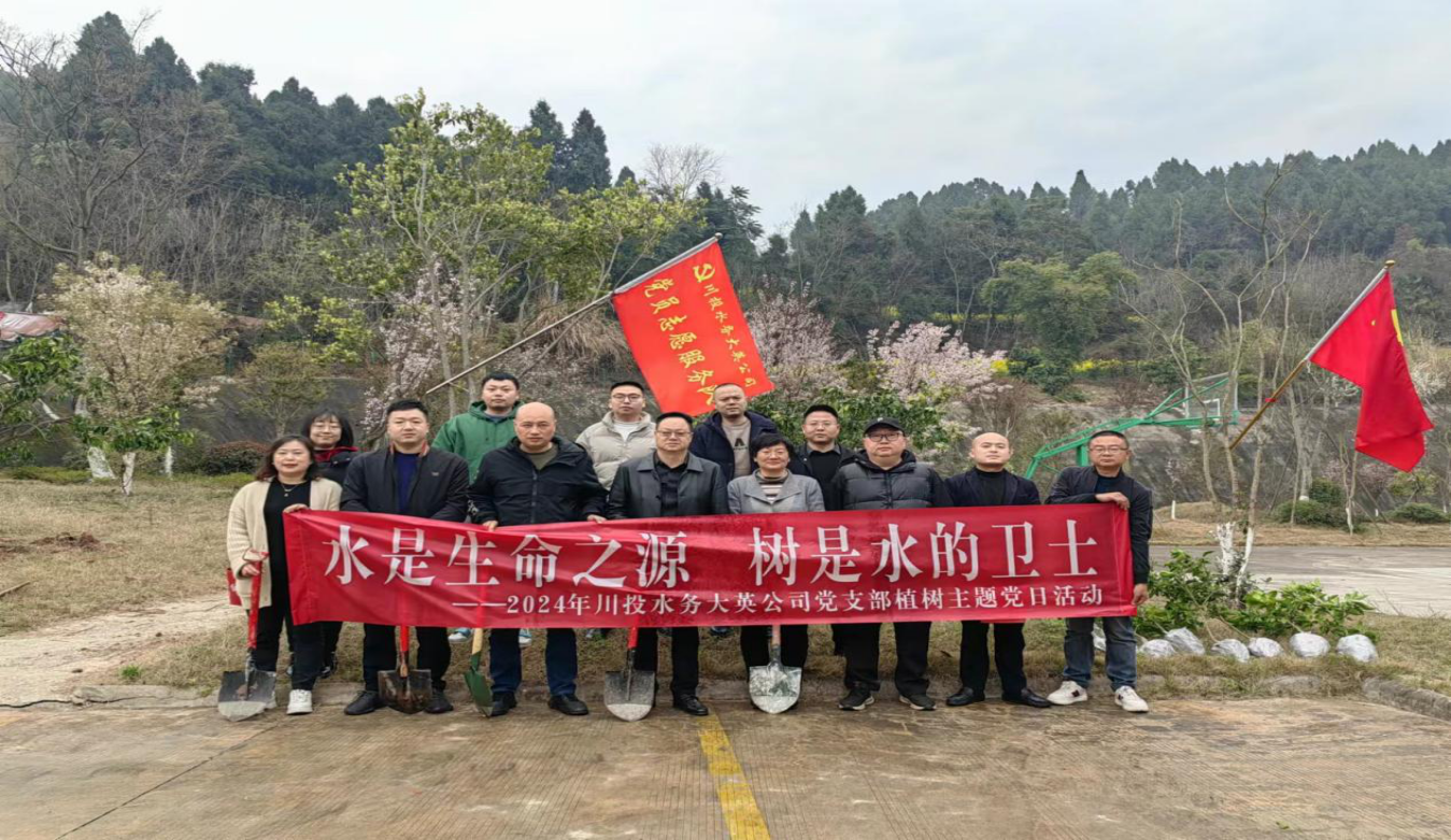 3月12日,春暖花開,也是我國第46個植樹節(jié),植樹添綠正當(dāng)時。為踐行“綠水青山就是金山銀山”的綠色發(fā)展理念,宣揚(yáng)環(huán)保精神,引導(dǎo)廣大黨員干部職工參與到植樹的行動中來,為大自然增添新綠,樹立“植綠、愛綠、護(hù)綠”的生態(tài)文明新風(fēng)尚。川投水務(wù)大英公司黨支部組織黨員志愿者、青年職工代表在大英公司新苗水廠開展“水是生命之源 樹是水的衛(wèi)士”植樹主題黨日活動。主題黨日活動由川投水務(wù)大英公司黨支部書記、執(zhí)行董事、總經(jīng)理王文川主持,副總經(jīng)理、工會主席王洪先參加活動。