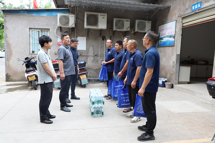 支部書記、執(zhí)行董事龔慶一行深入公司廠區(qū)、安裝維修隊及客戶服務中心,為一線職工送去了藿香正氣液、板藍根、風油精、葡萄糖口服液、礦泉水等防暑降溫物資,與職工們親切交談,詳細詢問他們的工作和生活情況。同時囑咐大家要注意勞逸結合,合理安排工作時間,做好防暑降溫措施,并強調當前正值汛期,生產(chǎn)廠區(qū)要做好防汛措施,加強雷電天氣設施設備安全檢查,確保正常運行。
