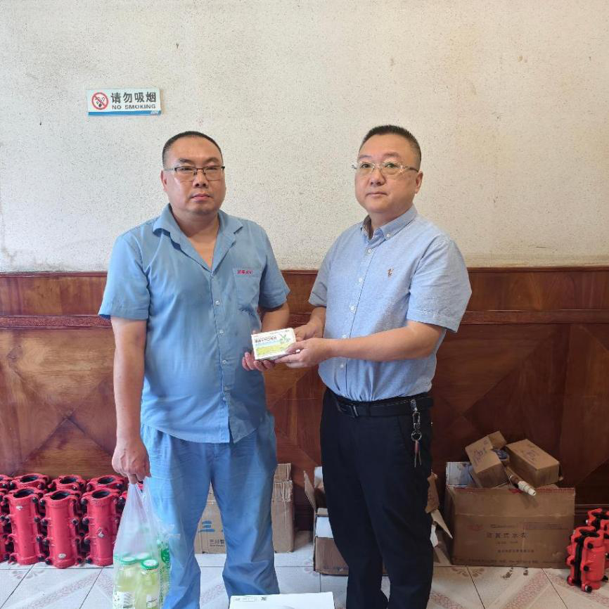 活動當(dāng)天,劍閣公司黨支部委員、工會主席、副總經(jīng)理韓名泉率工會慰問小組成員先后前往制水廠、在建工地、抄表一線等多個工作現(xiàn)場。每到一處,與員工們親切交流,詳細詢問他們的工作情況和身體狀況,將一份份飽含關(guān)懷的荷香正氣液、金銀花露等防暑降溫物品送到員工手中。