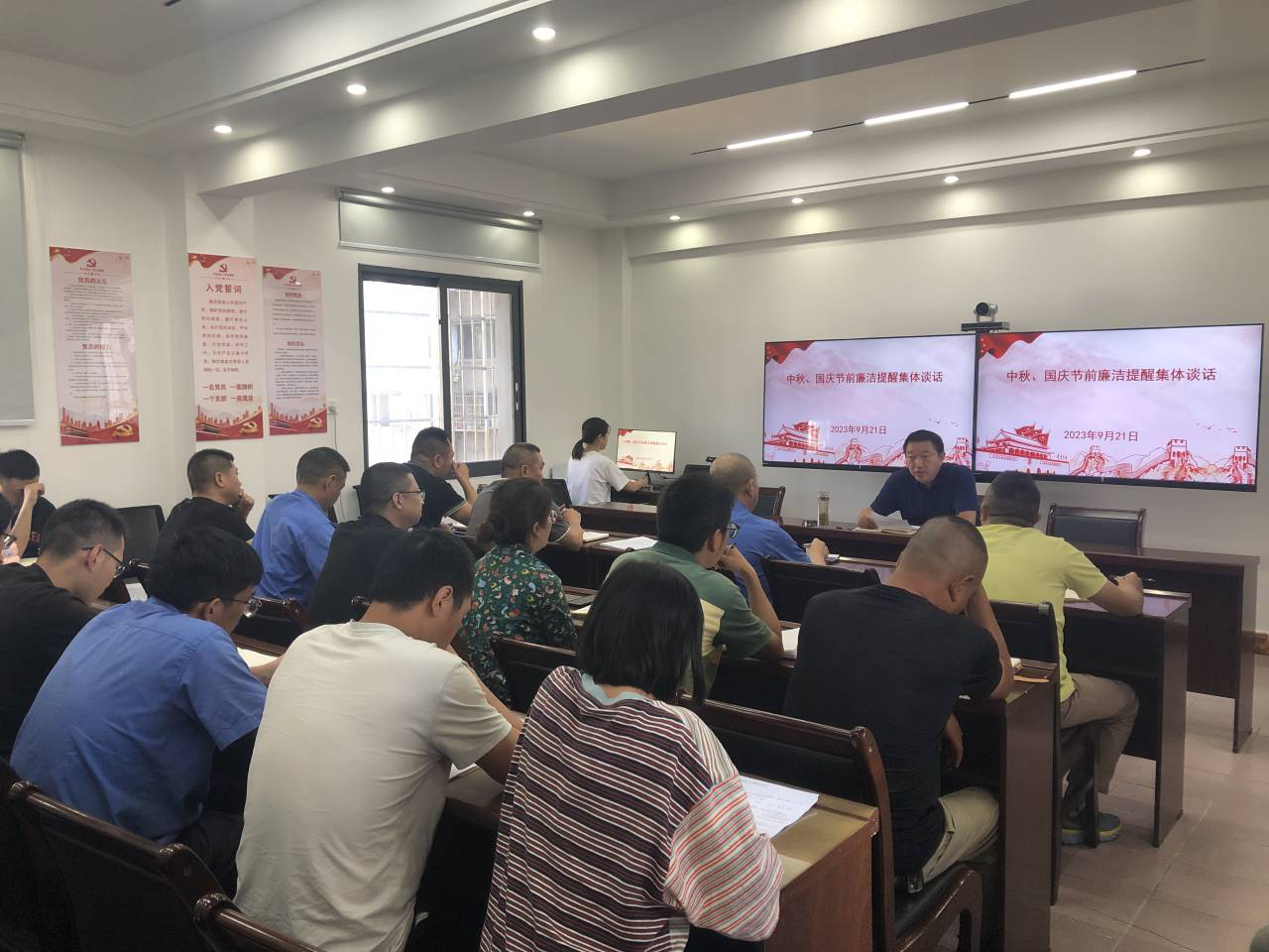 中秋、國慶雙節(jié)將至,為重申黨的紀律和廉潔自律規(guī)定,敲響節(jié)前廉潔警鐘,擰緊紀律作風“發(fā)條”,持續(xù)推進黨風廉政建設。9月21日,中江水司組織開展“強化節(jié)前廉潔教育 筑牢廉潔思想防線”主題黨日活動。
