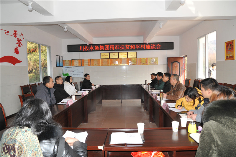 隨后,鄧銳總經(jīng)理一行與永勝鄉(xiāng)黨委、和平村村委會相關(guān)人員就和平村扶貧工作具體事宜進(jìn)行了座談。永勝鄉(xiāng)黨委專職扶貧副書記龍勇、和平村村支部書記劉文川對川投集團(tuán)、川投水務(wù)關(guān)心和平村貧困戶并投入人、財、物開展高標(biāo)準(zhǔn)精準(zhǔn)扶貧表示衷心感謝,并介紹了和平村精準(zhǔn)扶貧和脫貧工作的基本情況。川投水務(wù)駐村工作隊(duì)干部高峰向工作組詳細(xì)匯報了駐村扶貧工作開展情況。