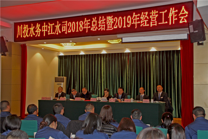 2月26日下午,中江水司在花園飯店迎賓樓四樓會議室召開2019年經(jīng)營工作會。川投水務集團黨委副書記、工會主席、中江水司董事長王小元、中江凱城建設投資集團有限公司副總經(jīng)理李昌良出席會議并作重要講話。川投水務中江水司經(jīng)營班子成員、全體員工共計90余人參加了會議。