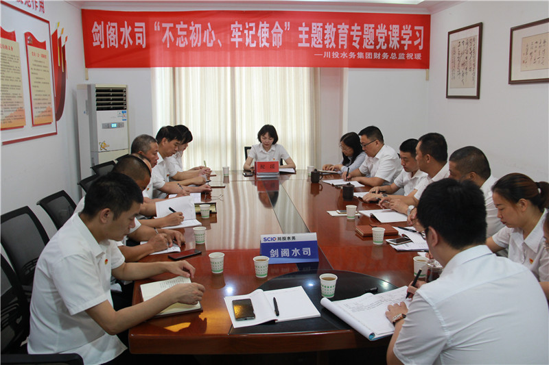 8月21日,川投水務(wù)集團(tuán)財(cái)務(wù)總監(jiān)祝瑗以“忠誠黨的事業(yè)、不忘初心情懷、竭誠服務(wù)社會(huì)、牢記使命擔(dān)當(dāng)”為題,組織劍閣水司全體黨員開展黨課學(xué)習(xí)。