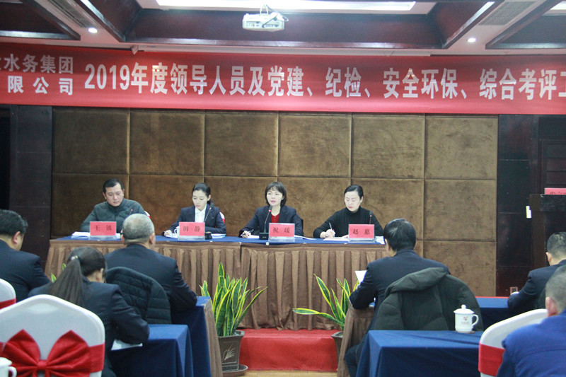 2020年1月14日上午9點,川投水務(wù)集團財務(wù)總監(jiān)祝瑗率生產(chǎn)技術(shù)部經(jīng)理王鎮(zhèn)、紀檢監(jiān)察部主任田靜、黨群部趙惠一行4人來到劍閣公司,開展了2019年度劍閣公司經(jīng)營班子及黨建、紀檢、安全環(huán)保等方面的綜合考評工作。劍閣公司黨支部書記、執(zhí)行董事、總經(jīng)理何天政,工會主席、副總經(jīng)理韓名泉,副總經(jīng)理杜剛以及全體中層干部、員工代表共計35人參加了此次會議。