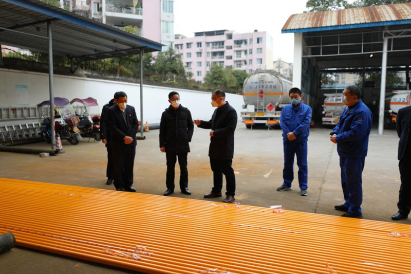 在客戶服務中心,鄧總首先看望慰問了堅守崗位的一線工作人員,現(xiàn)場了解了客戶服務中心值班、用戶繳費、疫情檢查登記臺賬等情況。在宏源大酒店,鄧總詳細了解了宏源公司防護用品儲備、入住酒店客人、疫情期間對酒店同期營業(yè)收入影響等情況,查看了酒店公共區(qū)域衛(wèi)生防疫登記臺賬。在CNG加油加氣站,鄧總了解了疫情期間加油加氣現(xiàn)場疫情防控工作、加油加氣生產(chǎn)經(jīng)營等情況。來到安裝公司加工廠,鄧總現(xiàn)場察看了安裝公司復產(chǎn)復工前的準備工作。