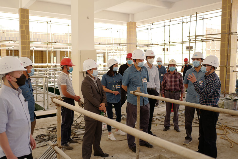 下午15時,一枝山項目工地氣溫高達(dá)35℃,梁有國董事長一行在川投船重公司經(jīng)營班子的陪同下,頂著烈陽前往工地調(diào)研并指導(dǎo)工作。在工地現(xiàn)場,梁董事長一行嚴(yán)格按照新冠肺炎防疫要求進(jìn)行體溫檢測并登記后,深入項目各主體構(gòu)筑物、各設(shè)備點,對工藝流程、設(shè)備安裝、中控中心等進(jìn)行工作指導(dǎo)。