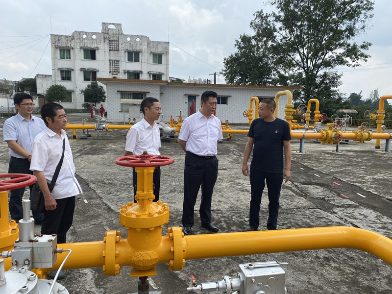 在名山氣司,黃董事長一行先后來到配氣站、CNG加油加氣站和辦公區(qū)域,認真查看生產(chǎn)工藝、設備設施運行情況及安全措施落實情況,詳細詢問了名山氣司氣源保障、供氣規(guī)模、供氣范圍、CNG加氣及加油業(yè)務管理等情況,并看望慰問了在崗一線員工。