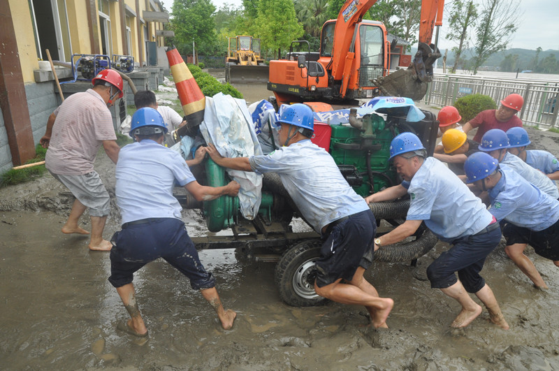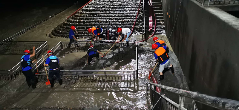 會(huì)上,黃董事長(zhǎng)通報(bào)了所屬中江水司、射洪水司及榮縣氣司等公司受災(zāi)情況及抗洪搶險(xiǎn)工作組織開(kāi)展情況,著重對(duì)受災(zāi)較為嚴(yán)重的射洪水司龍灘村取水口搶險(xiǎn)工作進(jìn)行了通報(bào)。受“8.16”百年一遇的涪江洪峰過(guò)境影響(此次洪峰流量最高達(dá)22600立方米/秒,比2018年“7.11”洪災(zāi)時(shí)最高流量高出1200立方米/秒),射洪水司龍灘村取水口廠區(qū)被過(guò)境洪峰及其攜帶的大量泥沙所淹沒(méi),被迫停止取水。為盡快恢復(fù)正常供水,川投水務(wù)黨委書(shū)記、董事長(zhǎng)黃勁,黨委副書(shū)記、總經(jīng)理鄧銳駐守射洪水司現(xiàn)場(chǎng)指揮,帶領(lǐng)由射洪水司精干力量組成的應(yīng)急搶險(xiǎn)隊(duì)伍歷經(jīng)22小時(shí)連續(xù)不間斷奮戰(zhàn),成功恢復(fù)供水,取得抗洪搶險(xiǎn)的階段性勝利。