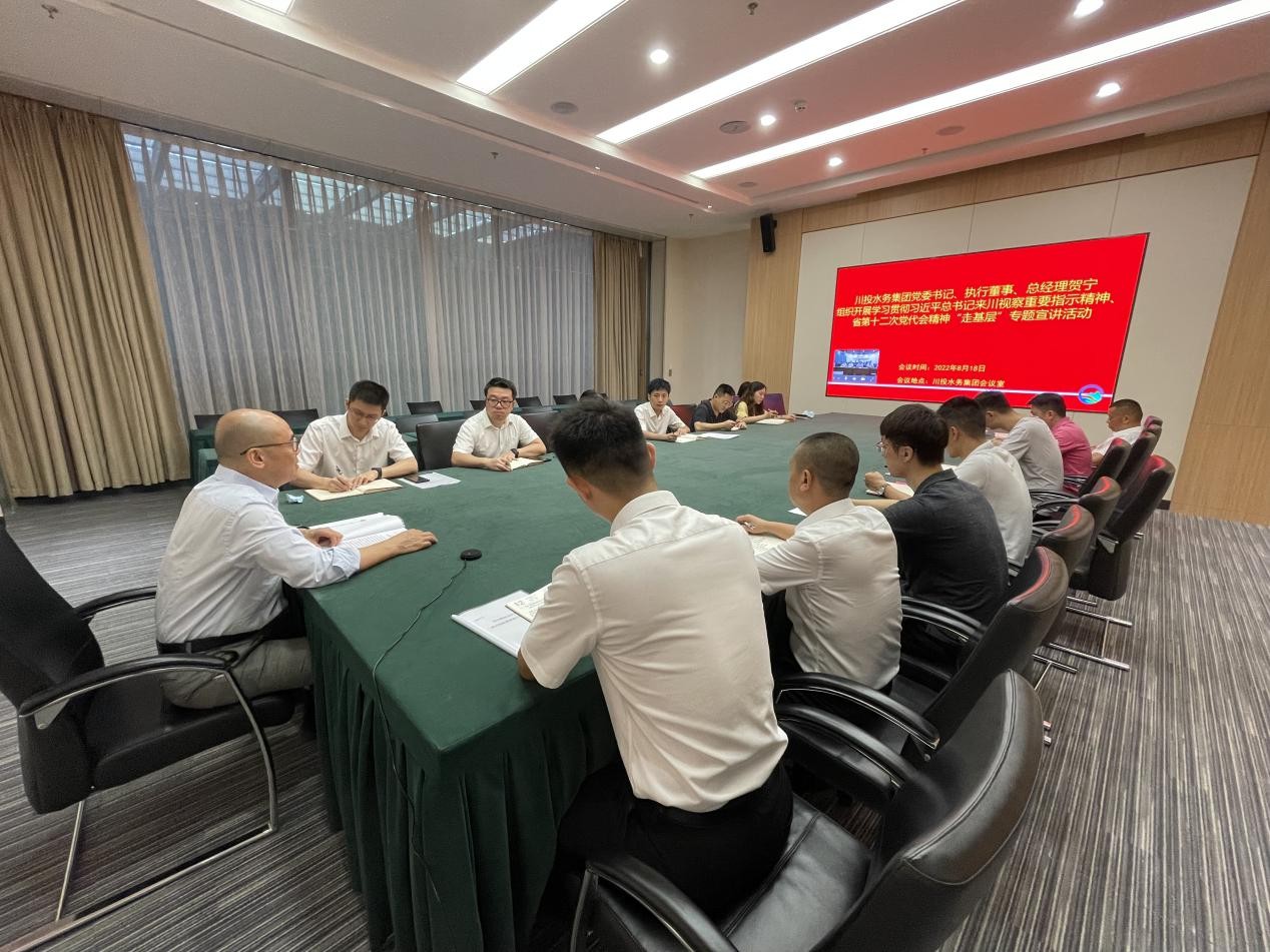 8月18日,根據(jù)川投水務集團黨委《關于認真做好學習貫徹習近平總書記來川視察重要指示精神和省第十二次黨代會精神“走基層”專題宣講的通知》統(tǒng)一安排部署。川投水務集團黨委書記、執(zhí)行董事、總經(jīng)理賀寧,組織召開了學習貫徹習近平總書記來川視察重要指示精神和省第十二次黨代會精神“走基層”專題宣講會,射洪水司領導班子、全體黨員干部,嚴格按照疫情防控要求,以視頻會議宣講形式參會。川投水務集團本部全體黨員干部、職工,參加現(xiàn)場學習。