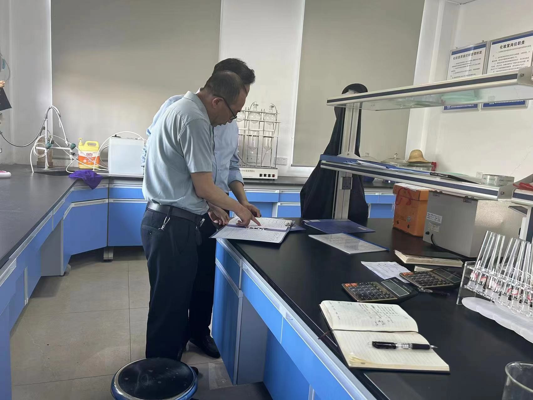 督導(dǎo)組首先到綜合部向值班人員詢問了節(jié)假日期間公司值班值守情況,在中控時查看了生產(chǎn)運行情況,隨后查看了化驗室?;奉I(lǐng)用及使用記錄,并詢問了每日檢測項目及檢測結(jié)果,最后實地查看了膜池化學清洗情況、剩余污泥脫水情況、生產(chǎn)設(shè)施設(shè)備運行等情況。