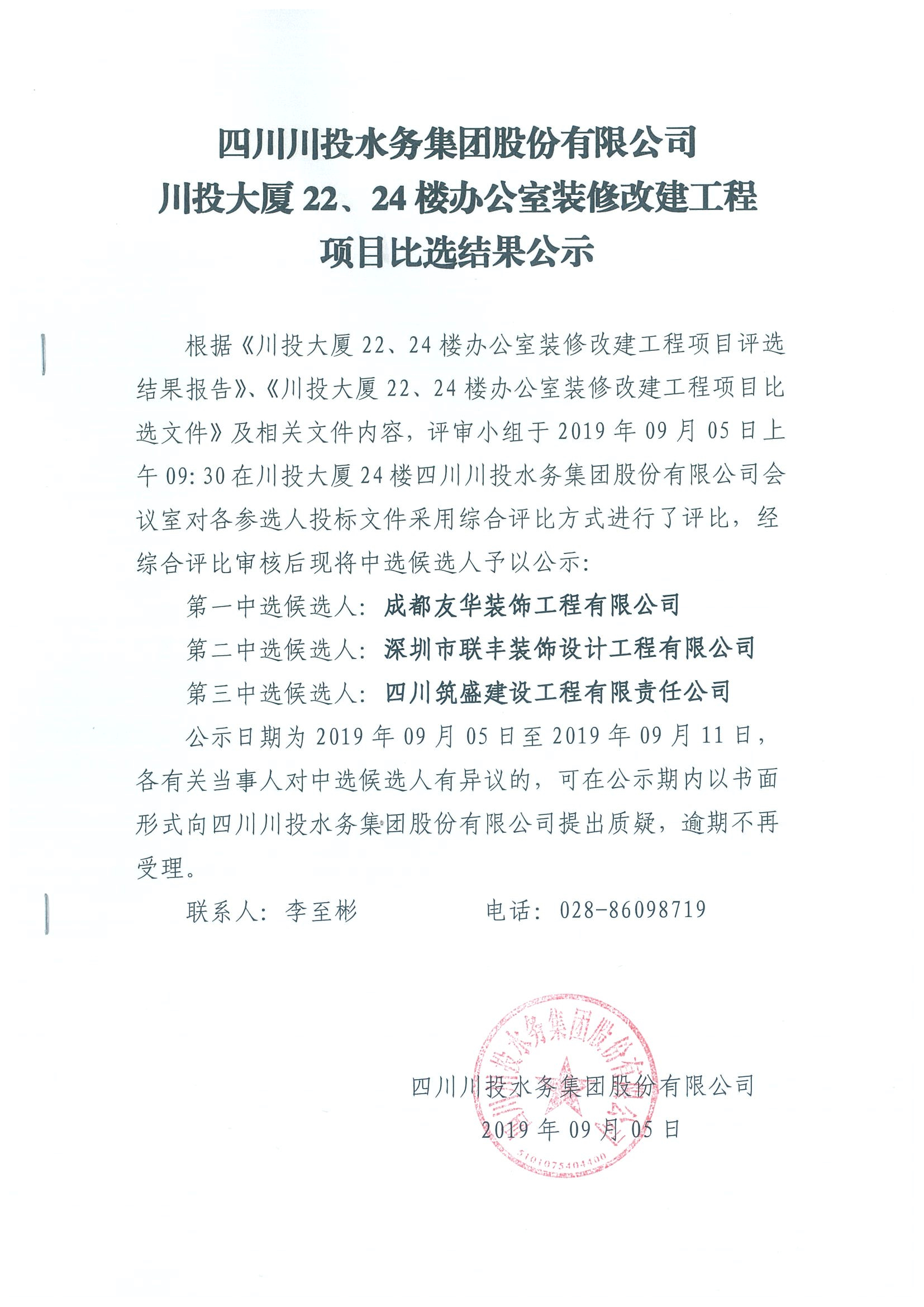上一條:四川川投水務(wù)集團股份有限公司川投大廈22、24樓辦公室弱電改建工程 項目競爭性談判公告