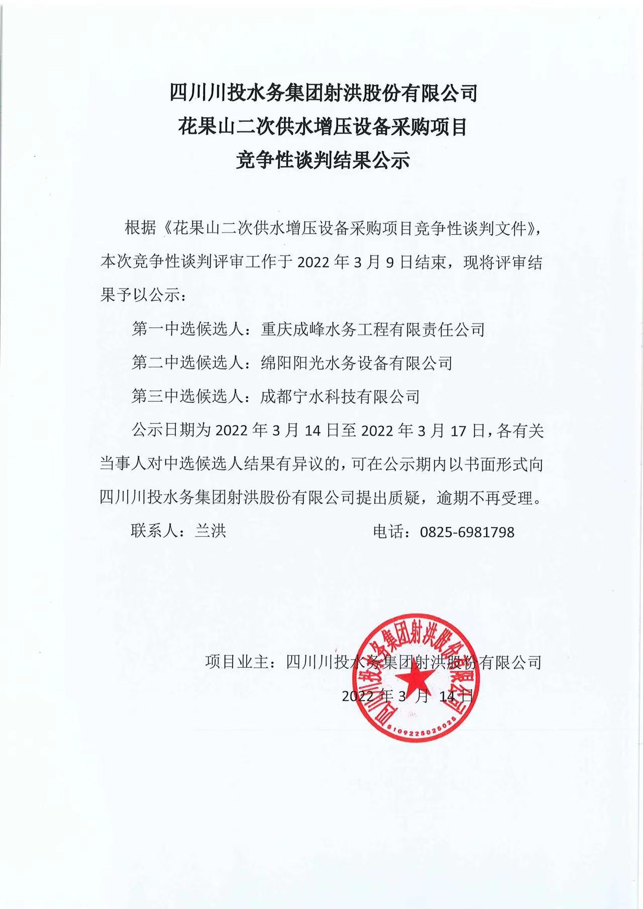 上一條:四川川投水務(wù)集團(tuán)股份有限公司射洪市新建自來(lái)水廠可行性研究報(bào)告編制項(xiàng)目比選公告(第二次)