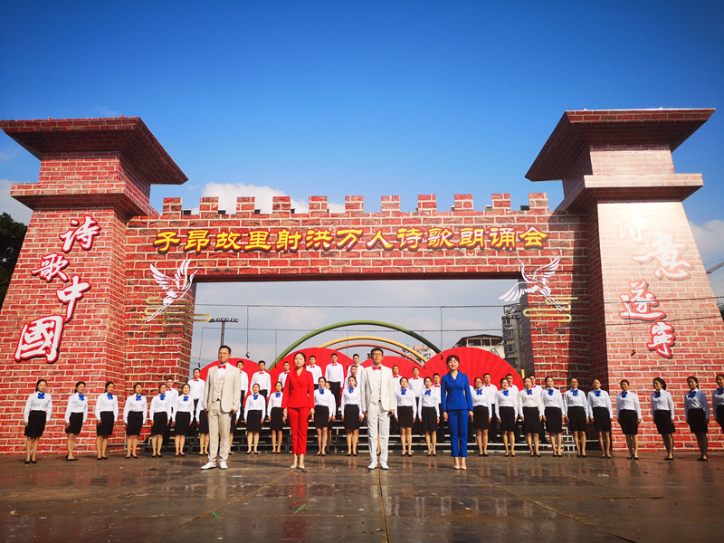 “前不見古人,后不見來者。念天地之悠悠,獨愴然而涕下。”2019年3月4日下午2:00,射洪縣子昂文化廣場上,昂首面向手握書卷的陳子昂銅像,一群書童打扮的小學(xué)生們高聲誦讀祭文,近萬名觀眾三拜文宗,拉開了“詩歌中國,詩意遂寧”射洪萬人詩歌朗誦會的大幕。中國作協(xié)副主席、中國作協(xié)兒童文學(xué)委員會主任高洪波,《詩刊》雜志主編李少君,市委常委、宣傳部長涂虹,市委常委、副市長袁超,市政協(xié)副主席胡家正,縣領(lǐng)導(dǎo)張韜、鄧茂、張朝書、王勇、王慶華及中外著名詩人、作家、文化學(xué)者等出席詩歌朗誦會。