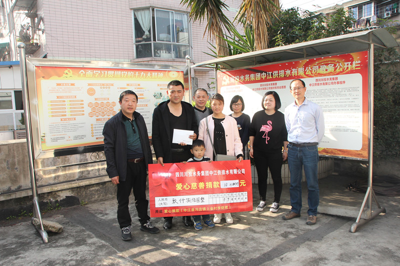 3月25日,中江水司發(fā)出了為公司幫扶的馮店鎮(zhèn)上金村貧困戶李武龍之子李鎧君的“獻(xiàn)愛心捐款倡議”,號召公司員工伸出援助之手,獻(xiàn)出微薄之力,為病人提供關(guān)懷和幫助。