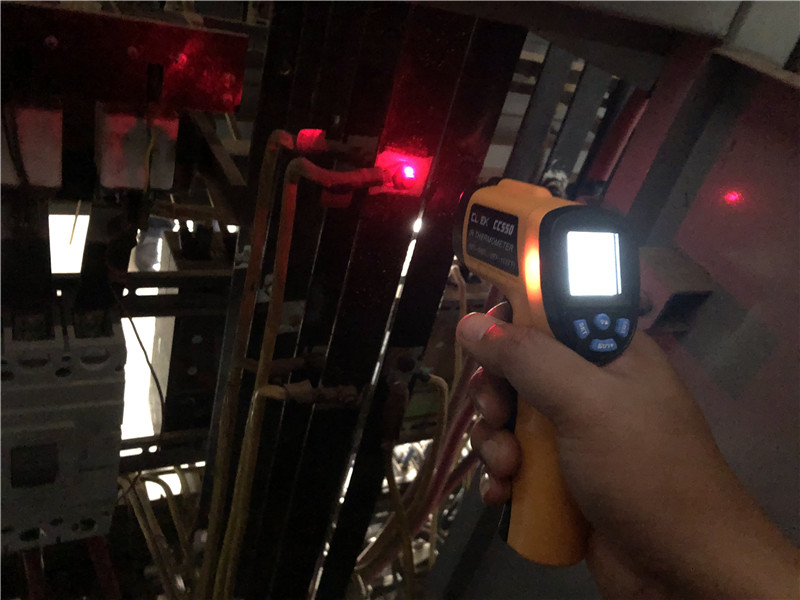 檢查組逐一對(duì)辦公樓、小區(qū)配電室和太吉水廠區(qū)域進(jìn)行了用電專項(xiàng)檢查。在檢查中及時(shí)發(fā)現(xiàn)辦公樓6樓空開進(jìn)出接線樁頭未用線鼻導(dǎo)致溫度過高;小區(qū)配電室空開出線端溫度過高達(dá)到107℃、進(jìn)線母排與空開接線處溫度達(dá)到153℃。檢查組當(dāng)即要求供電公司技術(shù)人員進(jìn)行維修處理。