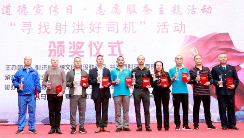 2019年9月20日,在第17個公民道德宣傳日當天, “慶祝新中國成立七十周年”公民道德宣傳日志愿服務(wù)主題活動暨“尋找射洪好司機”活動頒獎儀式上,由宏源公司推薦的CNG加油加氣站油車駕駛員鮮輝和客戶代表出租車駕駛員張清濤雙雙獲得“射洪好司機”稱號。