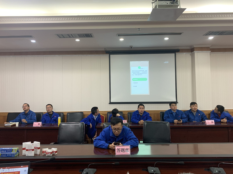 此次趣味競(jìng)賽共有三支隊(duì)伍參賽,每支隊(duì)伍分別由一名黨員、一名入黨積極分子、一名青年學(xué)習(xí)小組成員組成,達(dá)到了黨員、群眾全覆蓋。競(jìng)賽以“學(xué)習(xí)強(qiáng)國”學(xué)習(xí)平臺(tái)內(nèi)挑戰(zhàn)答題欄目為競(jìng)賽內(nèi)容,手機(jī)端為競(jìng)賽道具,投屏至大屏幕進(jìn)行展示。