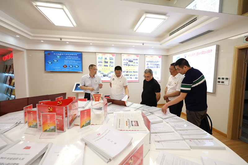 上午11:20分,趙礦長(zhǎng)一行參觀了4樓走廊文化建設(shè)、電梯文化建設(shè)、“家事國(guó)事天下事”“歷史上的今天”等黨建文化陣地,來(lái)到4樓黨群文化中心,公司黨委書(shū)記、總經(jīng)理李旭東向趙礦長(zhǎng)一行詳細(xì)介紹了公司黨建工作基本情況和8個(gè)組織各自的特色亮點(diǎn)工作,介紹了公司各支部、各部門(mén)近期開(kāi)展的“統(tǒng)籌疫情防控、生產(chǎn)經(jīng)營(yíng)和黨的建設(shè)懇談活動(dòng)”等情況。公司黨委近年來(lái)深入學(xué)習(xí)宣傳貫徹習(xí)近平新時(shí)代中國(guó)特色社會(huì)主義思想融入日常、抓在經(jīng)常,并通過(guò)學(xué)習(xí)《習(xí)近平新時(shí)代中國(guó)特色社會(huì)主義思想學(xué)習(xí)綱要》《習(xí)近平關(guān)于“不忘初心、牢記使命”重要論述選編》等書(shū)籍、黨員人人背誦“黨的基礎(chǔ)知識(shí)14項(xiàng)”、30歲以下青年員工每天堅(jiān)持書(shū)法練習(xí)等方式,增強(qiáng)“四個(gè)意識(shí)”,堅(jiān)定“四個(gè)自信”,做到“兩個(gè)維護(hù)”,更好地促進(jìn)了企業(yè)發(fā)展。