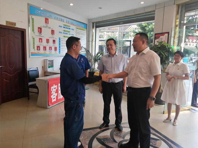 8月10日下午5時30分,大英縣委副書記、縣長胡銘超,縣委常委、縣委辦公室主任、縣總工會主席譚銀,遂寧市中國死海旅游度假區(qū)管委會副主任敬云川等領(lǐng)導(dǎo)來到川投水務(wù)大英水司老城服務(wù)大廳,向前幾日為最大限度保障供水、降低停水影響、毅然5次潛下灌滿消防水的閘閥井關(guān)閉閘閥而引發(fā)社會廣泛關(guān)注的川投水務(wù)大英水司“開關(guān)俠”魏巍表達(dá)問候和祝福,并送上慰問金。