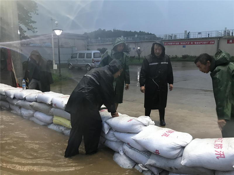 汛情發(fā)生伊始,中江水司緊急部署,通報水情、雨情,安排布置各項防汛工作。8月12日一早,總經(jīng)理朱禹帶隊,冒雨對各廠區(qū)生產(chǎn)設備、工藝構筑物、配電設施、圍墻護坡等開展拉網(wǎng)式排查。12日下午,組織召開了防汛減災工作會,對上午巡查情況進行了通報,對防汛工作進行再安排、再部署。同時每天不定時在公司微信群提示員工做好自身安全防范工作。