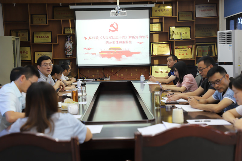 活動在鏗鏘有力、慷慨激昂的《人民軍隊(duì)忠于黨》歌聲中拉開序幕,公司支部書記龔慶從歌詞入手,進(jìn)行了深入淺出的講解。龔書記講到,這首歌曲體現(xiàn)了人民軍隊(duì)的向心力與凝聚力,充分展現(xiàn)了信仰的力量,人民軍隊(duì)是中國共產(chǎn)黨親手締造和始終領(lǐng)導(dǎo)的,是真正的人民子弟兵,是國家的堅(jiān)強(qiáng)基石,是國威是軍魂,是民族的脊梁。黨的領(lǐng)導(dǎo)的必要性和重要性體現(xiàn)在,一是中國共產(chǎn)黨的領(lǐng)導(dǎo)核心地位,是歷史選擇的必然性,是中國共產(chǎn)黨帶領(lǐng)中國人民走出了帝國主義和封建腐敗的舊社會,為中國人民指明了前進(jìn)的方向;二是中國共產(chǎn)黨始終保持先進(jìn)性,始終代表中國最先進(jìn)生產(chǎn)力的發(fā)展要求和先進(jìn)文化的前進(jìn)方向,帶領(lǐng)中華民族從獨(dú)立、解放到繁榮;三是在中國共產(chǎn)黨的正確領(lǐng)導(dǎo)下,中華民族在經(jīng)濟(jì)、政治、社會、文化、外交等多個(gè)方面都取得了前所未有的進(jìn)步和發(fā)展。