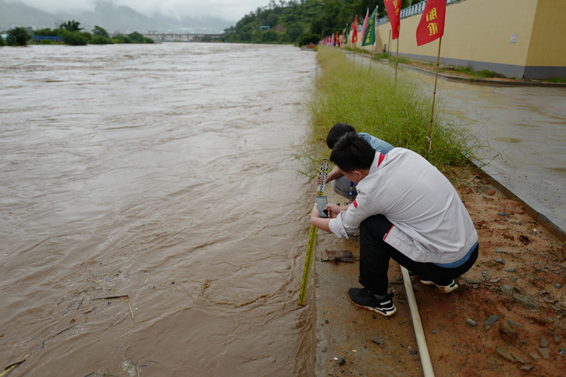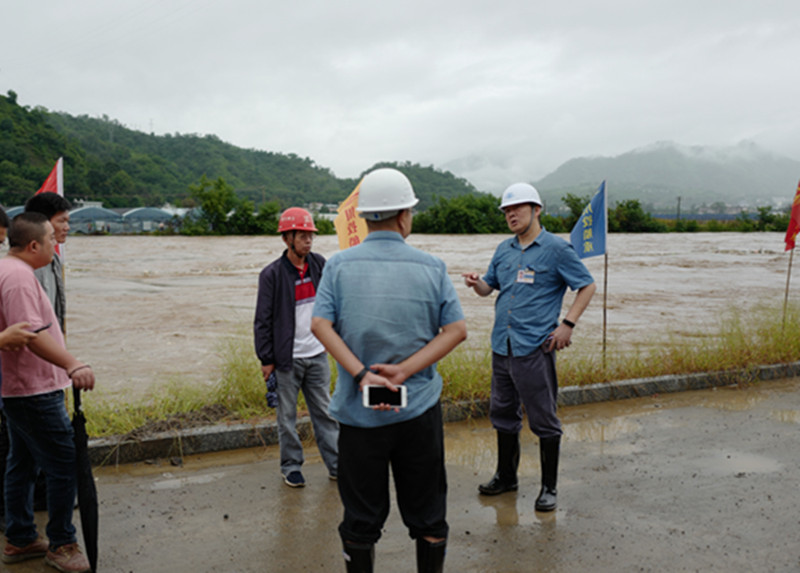 9月14日上午8時至11時,米易縣城區(qū)出現(xiàn)短時強(qiáng)對流及強(qiáng)降雨天氣,雨量達(dá)到76.8毫米,結(jié)合收到上游水文站的水位預(yù)警情況報(bào)告,公司第一時間快速反應(yīng),通知防汛(防疫)值班人員在保護(hù)好自身安全的前提下實(shí)時密切關(guān)注安寧河水位情況變化。8時51分,一枝山項(xiàng)目現(xiàn)場值班人員反饋安寧河河水上漲已經(jīng)超過標(biāo)高1057.5m,公司迅速啟動防汛預(yù)警,安委會主任馬銘偉、防汛工作總指揮李軍冒雨趕往項(xiàng)目現(xiàn)場,親自指揮防汛工作并與施工單位及防汛組人員一起,通知現(xiàn)場施工人員迅速從低洼處撤離轉(zhuǎn)移到安全地點(diǎn),對設(shè)備、物資等做好檢查與保護(hù)措施。9時54分,項(xiàng)目現(xiàn)場安寧河水位達(dá)到標(biāo)高1059m時(一枝山項(xiàng)目沿河段擋墻標(biāo)高1060m),已經(jīng)達(dá)項(xiàng)目防汛警戒水位,公司迅速啟動防汛應(yīng)急預(yù)案,防汛各小組人員迅速響應(yīng),觀察各工藝點(diǎn)情況,在河堤上巡察水位上漲情況,做到每十分鐘監(jiān)測一次水位,每半小時上報(bào)上級集團(tuán)水位情況。在工地防汛現(xiàn)場,公司安委會主任馬銘偉再次強(qiáng)調(diào)防汛人員安全問題,再次要求時刻繃緊防汛安全弦,正確使用防汛物資,要交叉迭砌沙袋等使防水墻更加結(jié)實(shí)。同時,防汛工作總指揮李軍在現(xiàn)場指出要嚴(yán)格執(zhí)行防汛應(yīng)急方案,并做好安寧河河水水位相關(guān)數(shù)據(jù)的記錄,收集好第一手影像資料,在今后的工作中依靠大數(shù)據(jù)做好汛期防范工作。