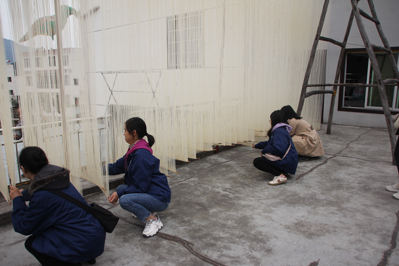 上午9:40分,全體黨員干部來到中江縣杰興鎮(zhèn)覺慧中國掛面村參觀,朱禹書記帶領大家深入群眾、走進農(nóng)家,向當?shù)卮迕裨敿毜牧私?、詢問了掛面生產(chǎn)工藝、原材料的選擇以及銷售情況,和黨員干部一起體驗了曬面、拉面、分面、煮面等制作環(huán)節(jié),品嘗了美味的中江掛面,更直觀的了解了作為非遺文化的中江掛面。