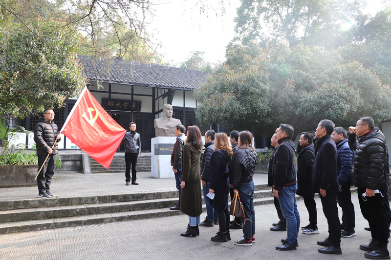 隨后,在吳玉章紀(jì)念碑前,全體黨員面對(duì)黨旗重溫入黨誓詞:“我志愿加入中國共產(chǎn)黨,擁護(hù)黨的綱領(lǐng)……”以錚錚誓言再次做出共產(chǎn)黨員的鄭重承諾。