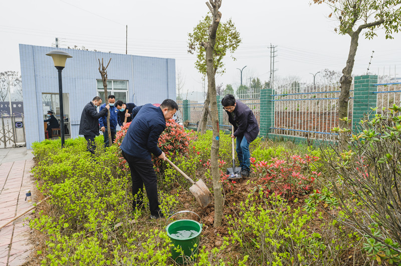 春回大地萬物蘇,植樹添綠正當(dāng)時。在第43個植樹節(jié)到來之際,中江水司黨支部把3月的主題黨日從室內(nèi)搬到了室外。3月12日,中江水司黨支部特邀中共德陽市政法委委員會黨總支第一、第二支部共同開展“學(xué)黨史、搭共建、優(yōu)環(huán)境”主題黨日暨共建活動,以實際行動踐行“黨史”學(xué)習(xí)教育和“植綠、愛綠、護綠”的生態(tài)文明新風(fēng)尚。
