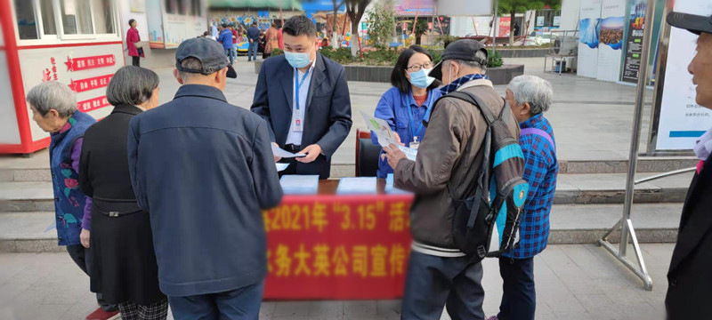 2021年3月15日上午,為進(jìn)一步貫徹《中華人民共和國(guó)消費(fèi)者權(quán)益保護(hù)法》和《四川省消費(fèi)者權(quán)益保護(hù)條例》,提高消費(fèi)者的滿意度,大英水司在新城區(qū)政府廣場(chǎng)和老城區(qū)朝陽(yáng)廣場(chǎng)開展消費(fèi)者權(quán)益日宣傳活動(dòng)。