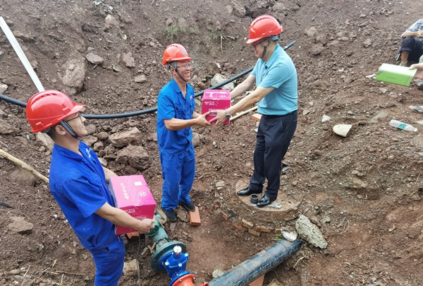 進(jìn)入夏季以來,氣溫持續(xù)攀高,為了做好安全生產(chǎn)和防暑降溫工作,關(guān)愛一線職工身心健康,川投水務(wù)大英水司開展了“夏日送清涼 慰問一線職工”活動。受川投水務(wù)大英水司執(zhí)行董事、總經(jīng)理王文川委托,大英水司黨支部組織委員、副總經(jīng)理、工會主席王洪先帶領(lǐng)綜合部、安監(jiān)部相關(guān)同志參加活動。