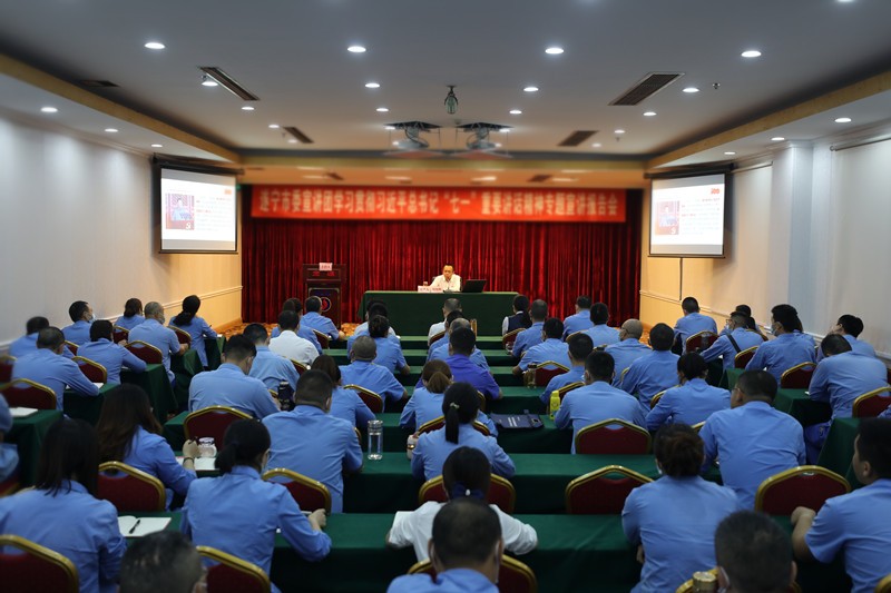 9月7日上午,遂寧市委宣講團學(xué)習(xí)貫徹習(xí)近平總書記“七一”講話重要精神專題宣講報告會在宏源公司11樓大會議室舉行。中共遂寧市委黨校高級講師,市委宣講團成員劉旭輝作了題為《以史為鑒開創(chuàng)未來——學(xué)習(xí)貫徹習(xí)近平總書記“七一”重要講話精神》專題宣講報告。宏源公司黨委委員、班子成員、黨員及不當(dāng)班的員工共計77人參加了本次報告會。川投水務(wù)黨委委員、副總經(jīng)理,宏源公司黨委書記、董事長、總經(jīng)理李旭東主持報告會。