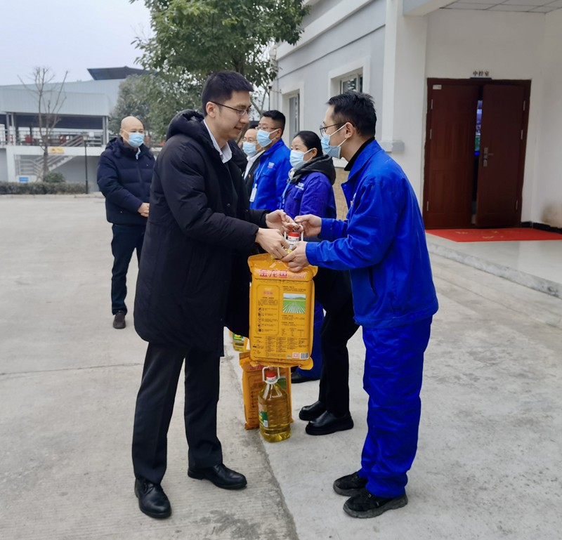 嚴(yán)總代表川投水務(wù)集團(tuán)在新苗水廠(chǎng)親切慰問(wèn)了公司困難黨員、困難職工共計(jì)5人,送上了慰問(wèn)品和慰問(wèn)信??荚u(píng)組一行分別深入新苗水廠(chǎng)和太吉水廠(chǎng)生產(chǎn)制水一線(xiàn)進(jìn)行了現(xiàn)場(chǎng)檢查,查看了制水工藝流程、安全環(huán)保、水質(zhì)檢測(cè)、應(yīng)急物資儲(chǔ)備和疫情防控等方面工作。