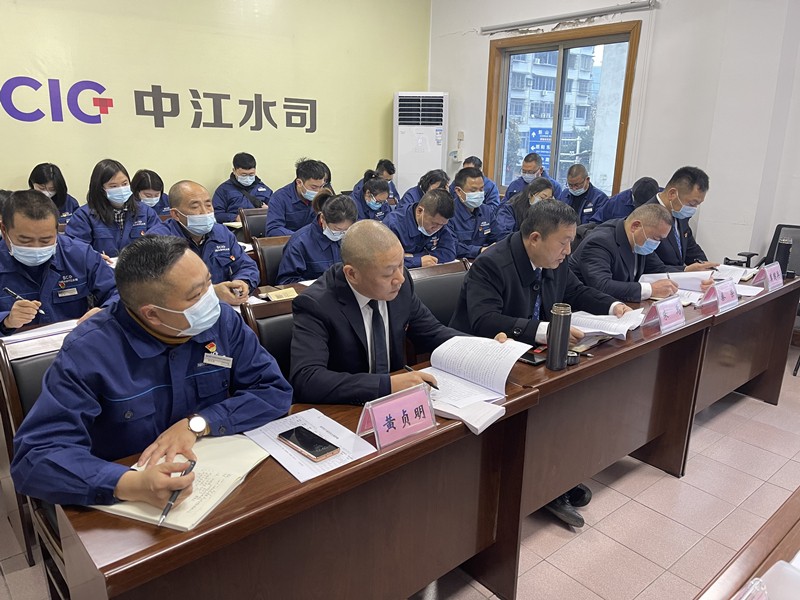 2022年1月12日,川投水務(wù)副總經(jīng)理劉松果率綜合事務(wù)管理部艾興宇、戰(zhàn)略經(jīng)營管理部曹育武一行,赴中江水司開展2021年度綜合考評、安全環(huán)保檢查和節(jié)前慰問工作。中江水司經(jīng)營班子成員、中層管理人員及職工代表,共計31人參加了考評會議。