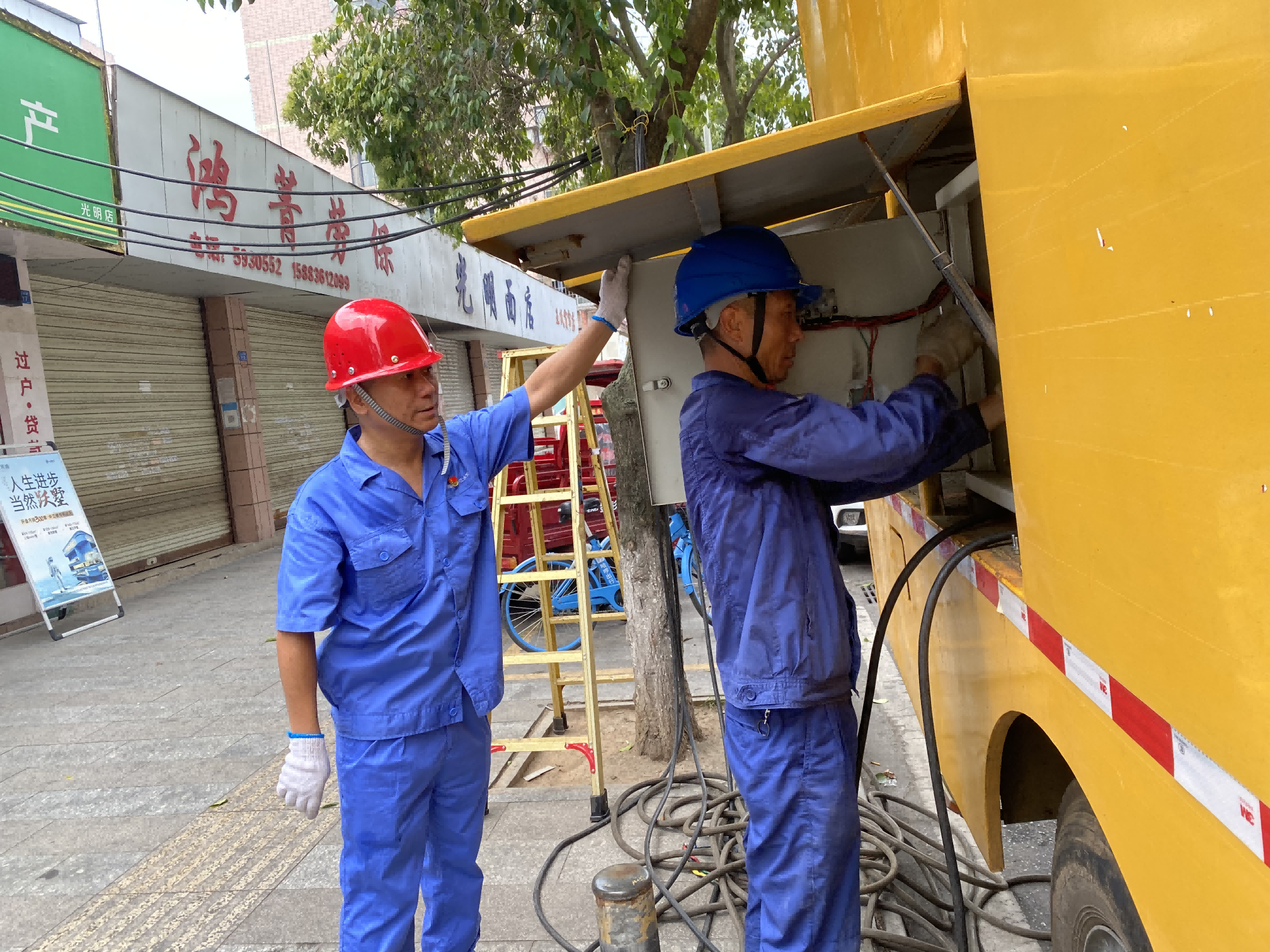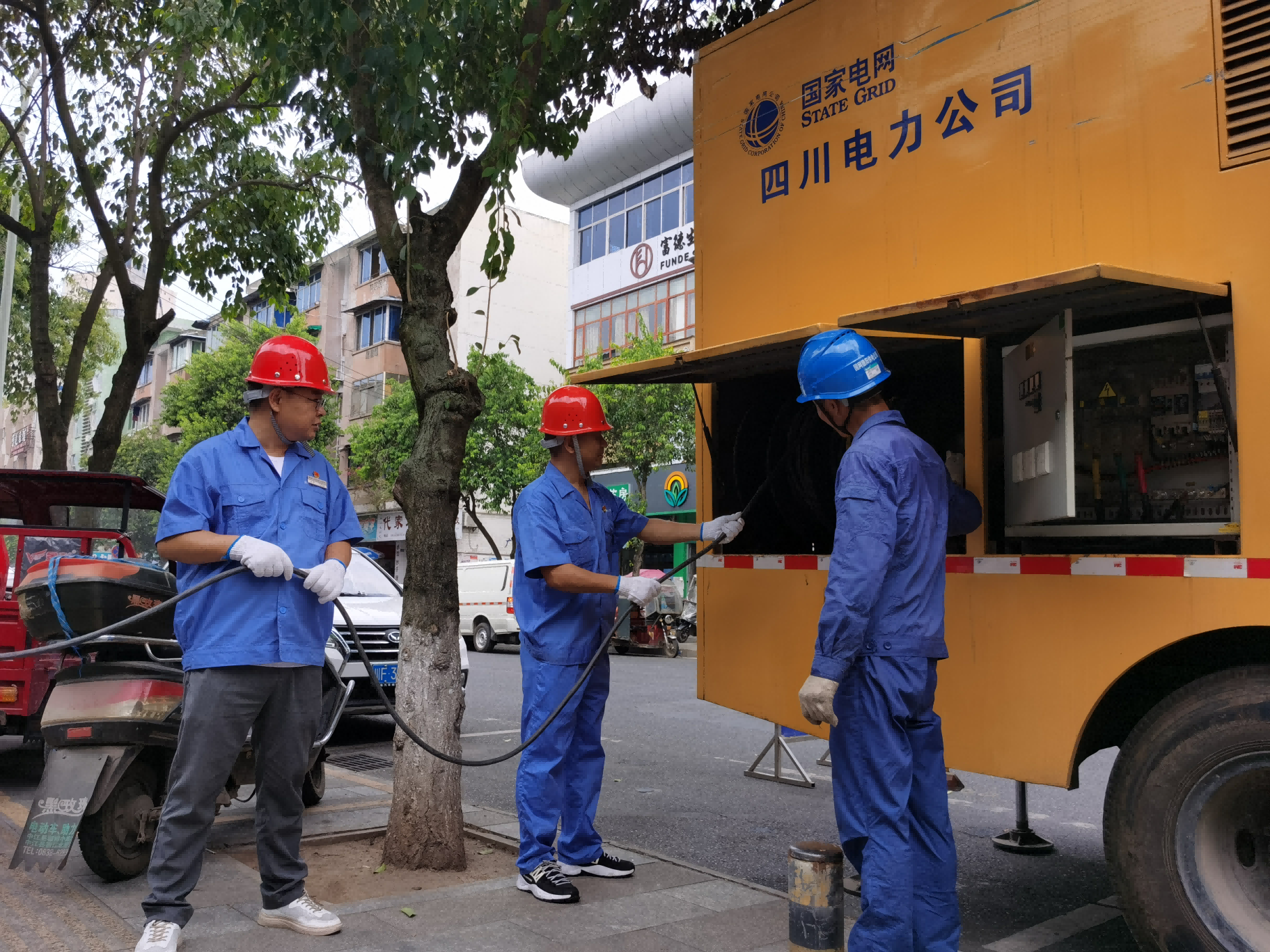 8月23日、24日,中江水司城區(qū)供水泵房再度停電,發(fā)電機(jī)也因連續(xù)高溫運(yùn)轉(zhuǎn)故障,為確保用戶高溫天氣下生活用水需求,公司迅速啟動(dòng)應(yīng)急預(yù)案,黨支部書記、董事長、總經(jīng)理朱禹立即與國網(wǎng)四川省電力公司中江縣供電分公司溝通協(xié)調(diào),請(qǐng)求調(diào)配應(yīng)急發(fā)電車給予電力支援。對(duì)接聯(lián)系后,中江供電分公司迅速組織精干力量,電力技術(shù)人員與公司供水部職工頂著烈日,冒著酷暑,身上的衣服已經(jīng)濕透,仍以最快的速度啟動(dòng)發(fā)電車,恢復(fù)供水泵房正常生產(chǎn),居民用水得以保障。