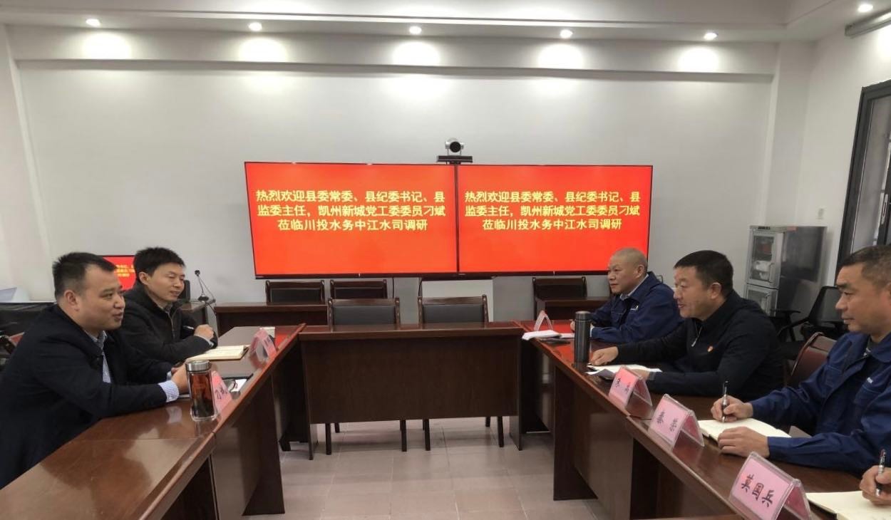 10月27日下午,中江縣委常委、紀(jì)委書記、監(jiān)委主任,凱州新城黨工委委員刁斌蒞臨中江水司調(diào)研。縣能源監(jiān)測和中小企業(yè)服務(wù)中心主任黃輝,中江水司支部書記、董事長、總經(jīng)理朱禹等相關(guān)人員陪同調(diào)研。